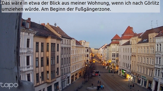 Völlig unerwartet ergab sich plötzlich die Situation, dass tatsächlich ein Umzug nach Görlitz wieder ganz oben auf der Liste steht. Genau gegenüber vom Haus meines Kollegen ist im ersten Stock eine Wohnung frei. Der Makler war sehr erfreut bereits einen potenziellen Interessenten zu haben. Die Wohnung wird ab Mitte Januar renoviert und steht erst dann zur Besichtigung zur Verfügung. Mitten im Zentrum dennoch ausreichend Geschäfte, Cafés und Restaurants rund herum und der Bahnhof ist auch nur 5 Minuten fußläufig entfernt. Schaun ma moi, dann seng mas scho.