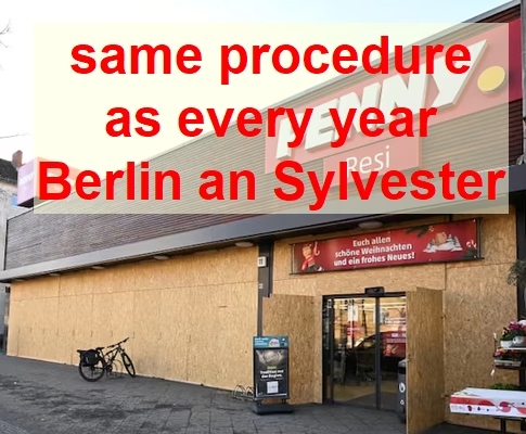 Das ist in Berlin Normalzustand an Sylvester. Geschäftsleute verbarrikadieren ihre Unternehmen, weil jedes Jahr der Mob über sie hereinbricht und Schäden jeweils in 5-stelliger €-Höhe anrichtet.