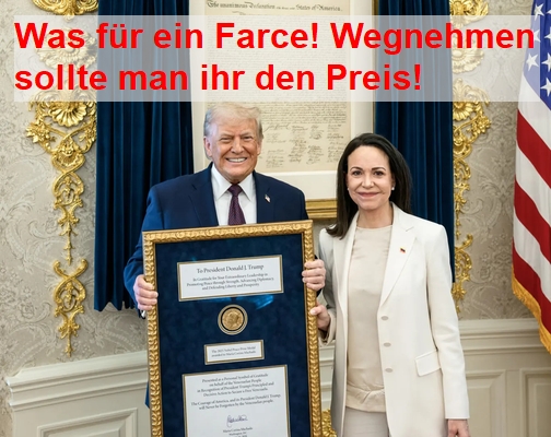Ob sich Frau Machado -aktuelle Friedensnobelpreisträgerin aus Venezuela- damit einen Gefallen getan hat, Mr. Trump die Medaille zu überreichen, bezweifle ich sehr stark.